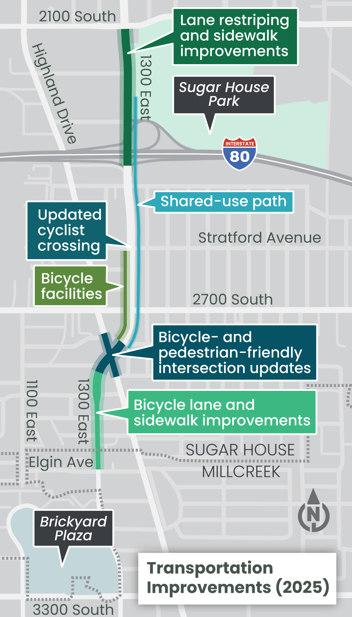 The project limits include 1300 East between 2100 South and Elgin Avenue. You can view the project map here.